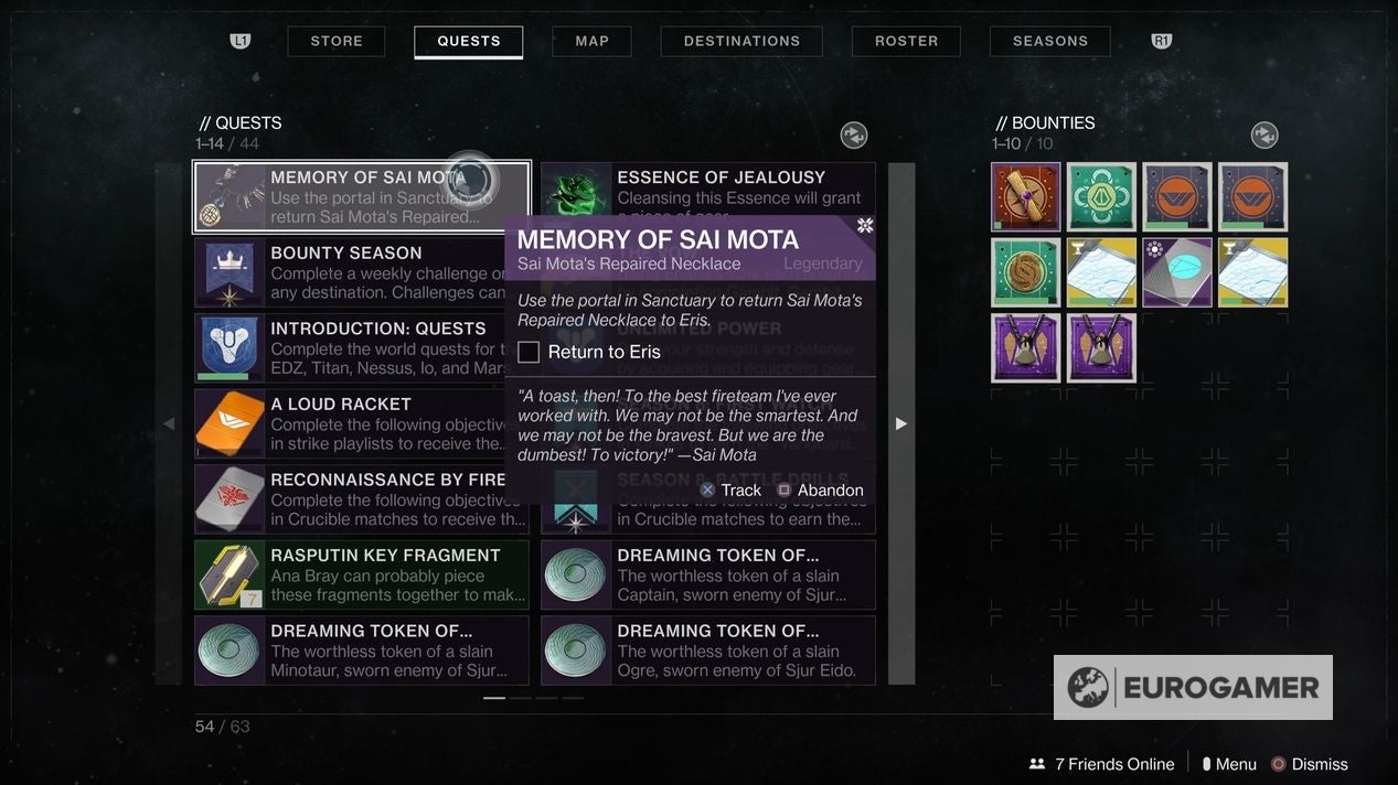 Every bit soon equally you do that, you'll receive the Retention of Sai Mota quest. Though not obvious at first, this is the showtime step to getting the Exotic we're after.